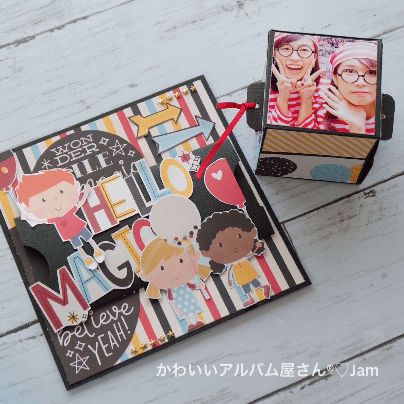 ボックスに写真を貼ってびっくり箱のように楽しめます。